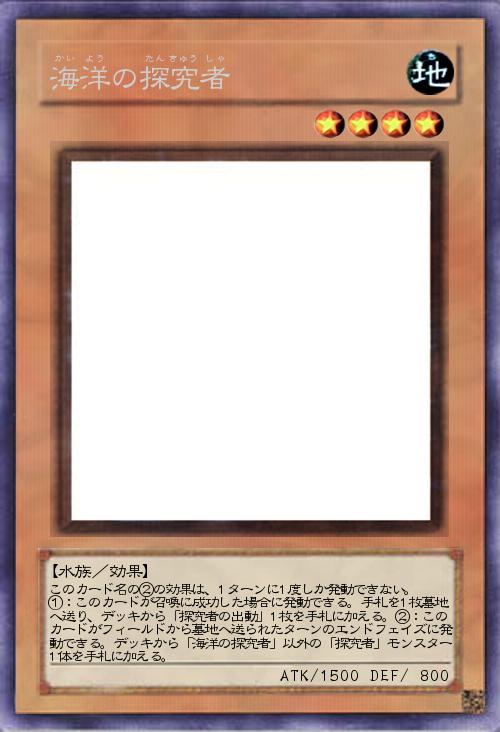 | このカード名の②の効果は、1ターンに1度しか発動できない。 ①:このカードが召喚に成功した場合に発動できる。手札を1枚墓地へ送り、デッキから「探究者の出動」1枚を手札に加える。②:このカードがフィールドから墓地へ送られたターンのエンドフェイズに発動できる。デッキから「海洋の探究者」以外の「探究者」モンスター1体を手札に加える。 | |||
