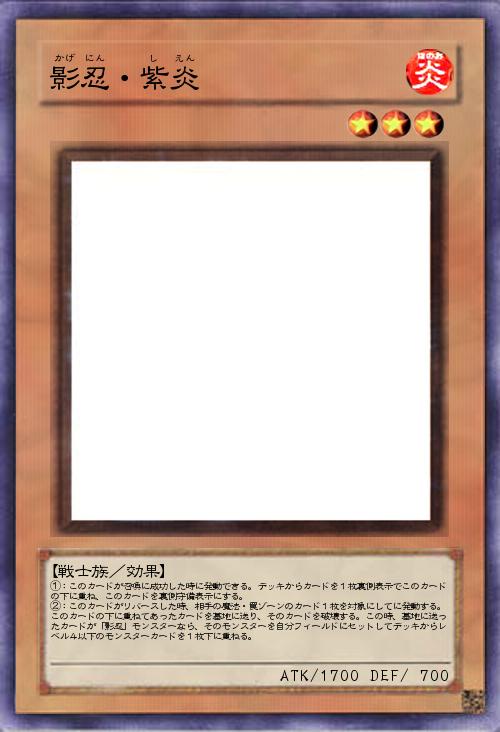 | ①:このカードが召喚に成功した時に発動できる。デッキからカードを1枚裏側表示でこのカードの下に重ね、このカードを裏側守備表示にする。 ②:このカードがリバースした時、相手の魔法・罠ゾーンのカード1枚を対象にしてに発動する。このカードの下に重ねてあったカードを墓地に送り、そのカードを破壊する。この時、墓地に送ったカードが「影忍」モンスターなら、そのモンスターを自分フィールドにセットしてデッキからレベル4以下のモンスターカードを1枚下に重ねる。 | |||