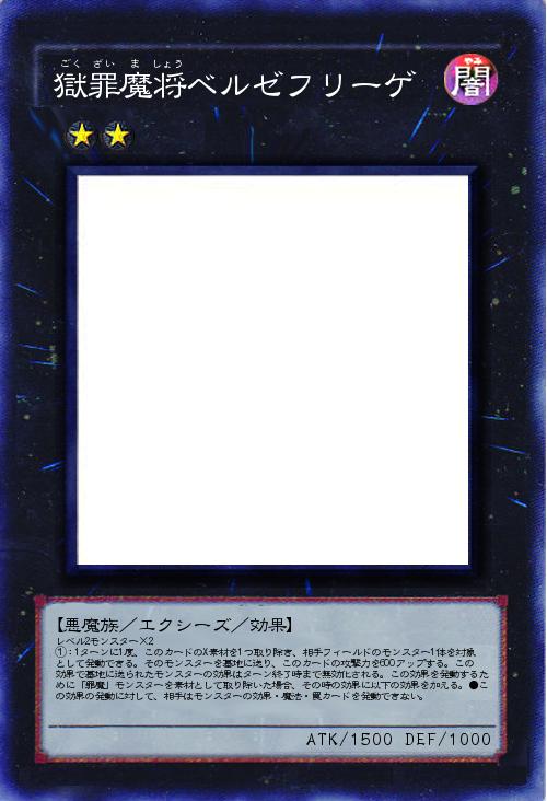 | レベル2モンスター×2 ①:1ターンに1度、このカードのX素材を1つ取り除き、相手フィールドのモンスター1体を対象として発動できる。そのモンスターを墓地に送り、このカードの攻撃力を600アップする。この効果で墓地に送られたモンスターの効果はターン終了時まで無効化される。この効果を発動するために「罪魔」モンスターを素材として取り除いた場合、その時の効果に以下の効果を加える。●この効果の発動に対して、相手はモンスターの効果・魔法・罠カードを発動できない。 | |||