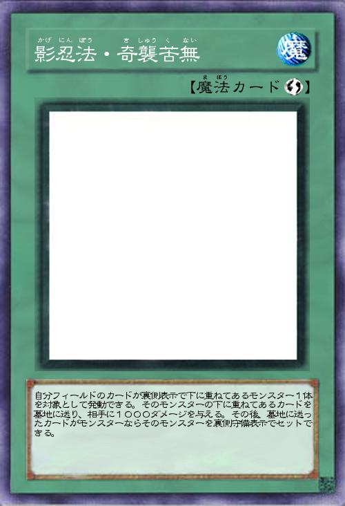 1000バーン+運がよければ展開補助。モンスターならなんでもいいかつ「墓地からのセット」なのでその気になればホルアクティすらセットできてしまうという運が絡むけど当たればまさに奇襲。ただしホルアクは勝利条件のせいでただのバニラになってしまう。