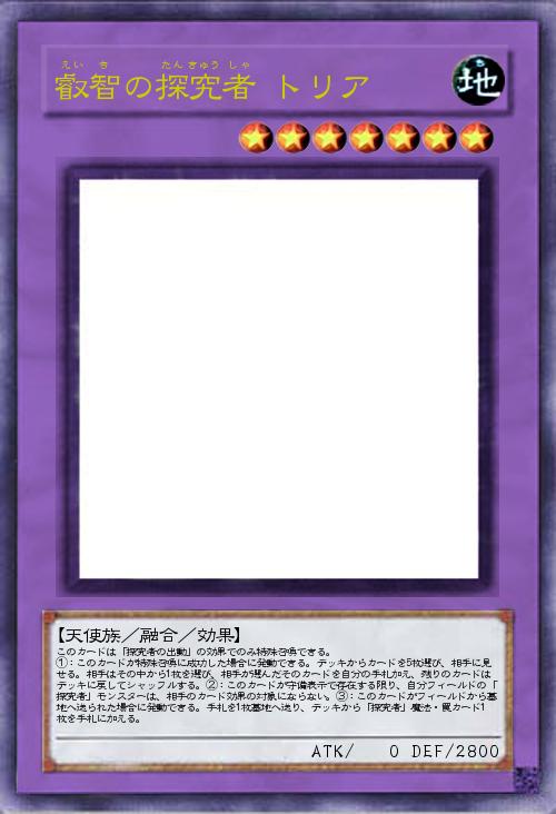 | このカードは「探究者の出動」の効果でのみ特殊召喚できる。 ①:このカードが特殊召喚に成功した場合に発動できる。デッキからカードを5枚選び、相手に見せる。相手はその中から1枚を選び、相手が選んだそのカードを自分の手札加え、残りのカードはデッキに戻してシャッフルする。②:このカードが守備表示で存在する限り、自分フィールドの「探究者」モンスターは、相手のカード効果の対象にならない。③:このカードがフィールドから墓地へ送られた場合に発動できる。手札を1枚墓地へ送り、デッキから「探究者」魔法・罠カード1枚を手札に加える。 | |||
