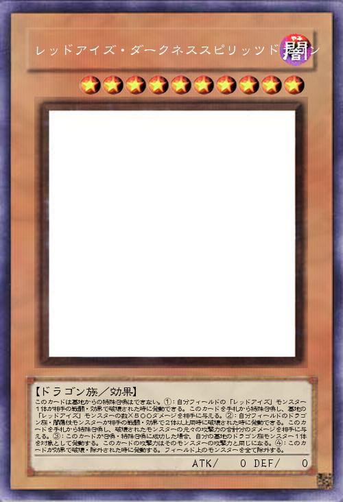 | このカードは墓地からの特殊召喚はできない。①:自分フィールドの「レッドアイズ」モンスター1体が相手の戦闘・効果で破壊された時に発動できる。このカードを手札から特殊召喚し、墓地の「レッドアイズ」モンスターの数×500ダメージを相手に与える。②:自分フィールドのドラゴン族・闇属性モンスターが相手の戦闘・効果で2体以上同時に破壊された時に発動できる。このカードを手札から特殊召喚し、破壊されたモンスターの元々の攻撃力の合計分のダメージを相手に与える。③:このカードが召喚・特殊召喚に成功した場合、自分の墓地のドラゴン族モンスター1体を対象として発動する。このカードの攻撃力はそのモンスターの攻撃力と同じになる。④:このカードが効果で破壊・除外された時に発動する。フィールド上のモンスターを全て除外する。 | |||