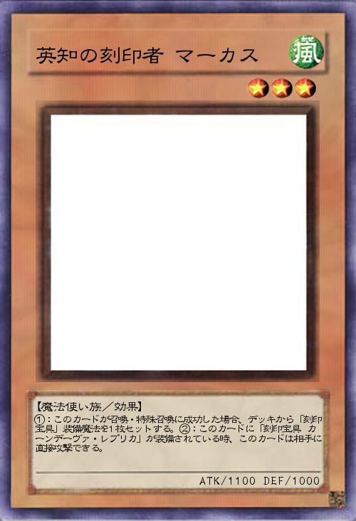 | ①:このカードが召喚・特殊召喚に成功した場合、デッキから「刻印宝具」装備魔法を1枚セットする。②:このカードに「刻印宝具 カーンデーヴァ・レプリカ」が装備されている時、このカードは相手に直接攻撃できる。 | |||