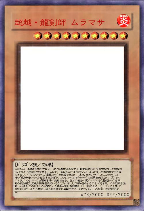 | このモンスタ-は通常召喚できない.自分の墓地に存在する「龍剣師」モンスタ-を3体除外した場合のみ,手札から特殊召喚できる.このカ-ド名のモンスタ-は自分フィ-ルド上に1体しか表側表示で存在できない.①このモンスタ-に「霊龍」カ-ドを装備できない.また,自分フィ-ルド上にこのカ-ド以外の「龍剣師」モンスタ-が存在するかぎり,このモンスタ-は相手のカ-ドの効果を受けない.②1タ-ンに1度,このモンスタ-の攻撃宣言時に発動できる.自分の魔法・罠ゾ-ンにいる「霊龍」カ-ドを任意の枚数選び,正規の特殊召喚扱いで自分フィ-ルド上に特殊召喚することができる.この効果を発動した場合,このモンスタ-の攻撃により相手が受ける戦闘ダメ-ジは0になる.③1タ-ンに1度,このモンスタ-がデッキから墓地へ送られた場合に発動できる.相手フィ-ルド上のモンスタ-1体を除外する. | |||
