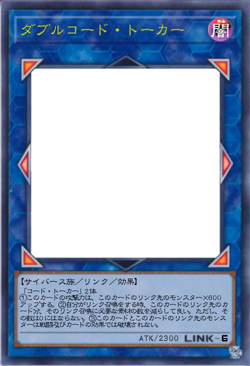 | 「コード・トーカー」2体 ①このカードの攻撃力は、このカードのリンク先のモンスター×600アップする。②自分がリンク召喚をする時、このカードのリンク先のカード分、そのリンク召喚に必要な素材の数を減らして良い。ただし、その数は0にはならない。③このカードとこのカードのリンク先のモンスターは戦闘及びカードの効果では破壊されない。 | |||