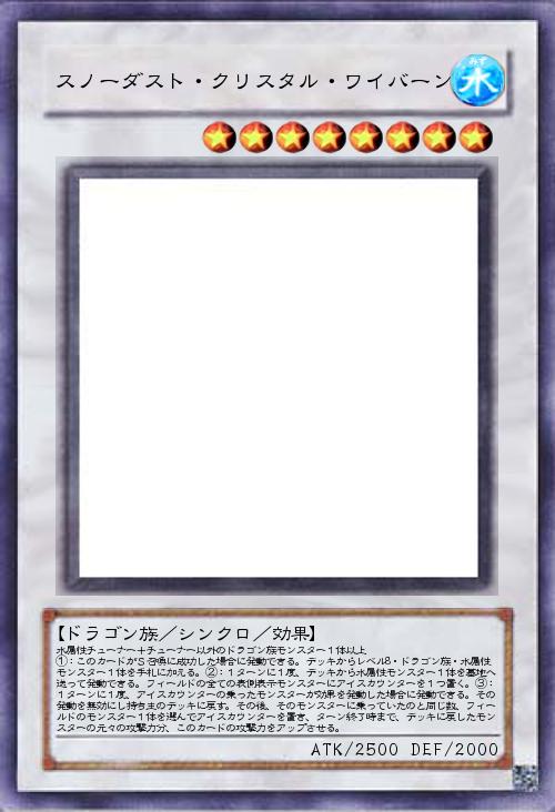 前とは逆の素材条件ですね。S召喚成功時にデッキから限定的ながら、レベル8で水ドラゴンのサーチができると優秀ですね。何よりスノーダスト・ドラゴンへアクセスできるのが強力です。他ではブルーアイスなんかのサーチもできるため、採用してみるのもよさそうですね。打点もありますし。