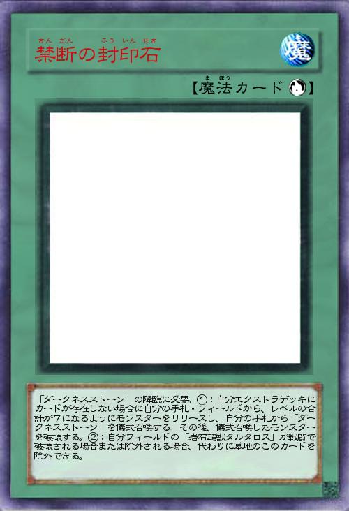 闇の封印石専用の儀式魔法。発動するためにはEXレスである必要があり、生贄のレベルも7に揃えないといけないため、岩石超獣は生贄に出来ないため、別の石でも生贄にしましょう。そうして出て来るのが、手札からダークネスストーン。その後に即座に破壊するため、タルタロスを速攻呼び出す感じです。しかし!それだけでは終わりません。正直それだけだと、専用儀式魔法として微妙な気もしますからね。詳しくは次回!