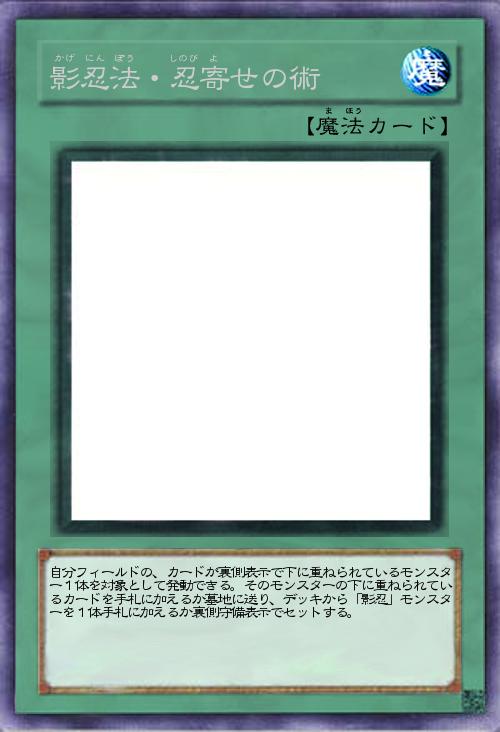 | 自分フィールドの、カードが裏側表示で下に重ねられているモンスター1体を対象として発動できる。そのモンスターの下に重ねられているカードを手札に加えるか墓地に送り、デッキから「影忍」モンスターを1体手札に加えるか裏側守備表示でセットする。 | |||