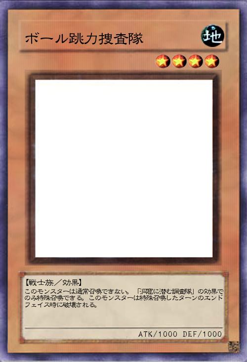 | このモンスターは通常召喚できない。「洞窟に潜む調査隊」の効果でのみ特殊召喚できる。このモンスターは特殊召喚したターンのエンドフェイス時に破壊される。 | |||