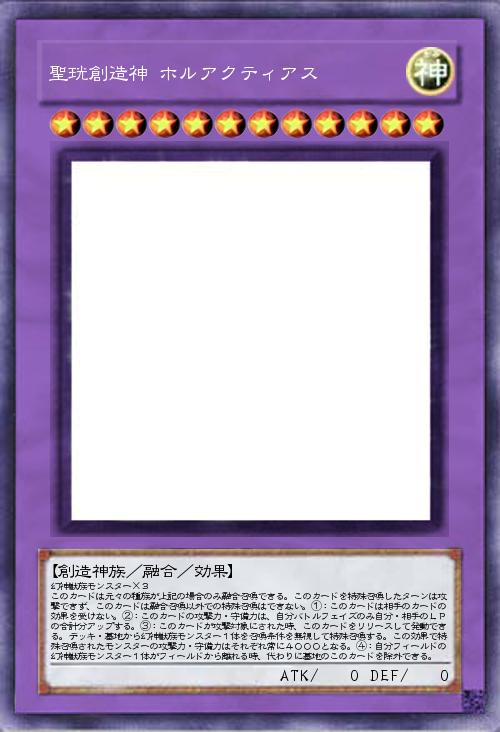| 幻神獣族モンスター×3 このカードは元々の種族が上記の場合のみ融合召喚できる。このカードを特殊召喚したターンは攻撃できず、このカードは融合召喚以外での特殊召喚はできない。①:このカードは相手のカードの効果を受けない。②:このカードの攻撃力・守備力は、自分バトルフェイズのみ自分・相手のLPの合計分アップする。③:このカードが攻撃対象にされた時、このカードをリリースして発動できる。デッキ・墓地から幻神獣族モンスター1体を召喚条件を無視して特殊召喚する。この効果で特殊召喚されたモンスターの攻撃力・守備力はそれぞれ常に4000となる。④:自分フィールドの幻神獣族モンスター1体がフィールドから離れる時、代わりに墓地のこのカードを除外できる。 | |||