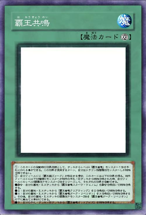 | ①:このカードの発動時の効果処理として、デッキからレベル4「覇王眷竜」モンスター1体を手札に加える事ができる。この効果を使用するターン、自分はドラゴン族闇属性モンスターしか特殊召喚できない。 ②:自分フィールドに「覇王龍ズァーク」が存在する場合、このカードは以下の効果を得る。相手フィールドに以下の種類のモンスターが相手の手札・EXデッキから特殊召喚された時、自分フィールドのレベル4闇属性Pモンスター2体をリリースして、それぞれの効果を発動できる。 ●融合:自分の墓地・EXデッキから「覇王眷竜スターヴ・ヴェノム」を融合召喚扱いで特殊召喚する。 ●S:自分の墓地・EXデッキから「覇王眷竜クリアウィング」をS召喚扱いで特殊召喚する。 ●X:自分の墓地・EXデッキから「覇王眷竜ダーク・リベリオン」をX召喚扱いで特殊召喚する。その後、自分の墓地・EXデッキの闇属性Pモンスター2体を「覇王眷竜ダーク・ | |||