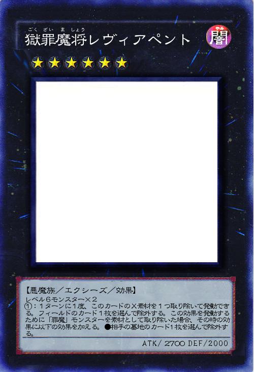 | レベル6モンスター×2 ①:1ターンに1度、このカードのX素材を1つ取り除いて発動できる。フィールドのカード1枚を選んで除外する。この効果を発動するために「罪魔」モンスターを素材として取り除いた場合、その時の効果に以下の効果を加える。●相手の墓地のカード1枚を選んで除外する。 | |||