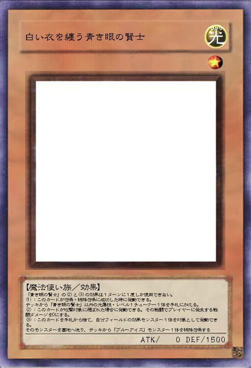 | 「青き眼の賢士」の(2)と(3)の効果は1ターンに1度しか使用できない。 (1):このカードが召喚・特殊召喚に成功した時に発動できる。 デッキから「青き眼の賢士」以外の光属性・レベル1チューナー1体を手札に加える。 (2):このカードが攻撃対象に選ばれた場合に発動できる。その戦闘でプレイヤーに発生する戦闘ダメージを0にする。 (3):このカードを手札から捨て、自分フィールドの効果モンスター1体を対象として発動できる。 そのモンスターを墓地へ送り、デッキから「ブルーアイズ」モンスター1体を特殊召喚する | |||