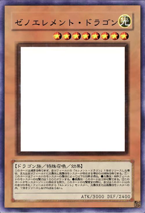 | このカードは通常召喚できず、自分フィールドの「エレメント・ドラゴン」1体をリリースした場合、または自分フィールドに炎属性と風属性モンスターが存在する場合のみ特殊召喚できる。①:このカードはフィールドのモンスターの属性によって以下の効果を得る。●炎属性:相手フィールドのモンスターの攻撃力は1000ダウンする。●風属性:このカードは2回攻撃できる。②このカードがモンスターゾーンに存在する限り、このカードの攻撃宣言の際に、自分はこのカード以外の自分の手札・フィールドの中から「エレメント」モンスター、炎属性または風属性モンスターの内、1体をリリースしなければならない。 | |||
