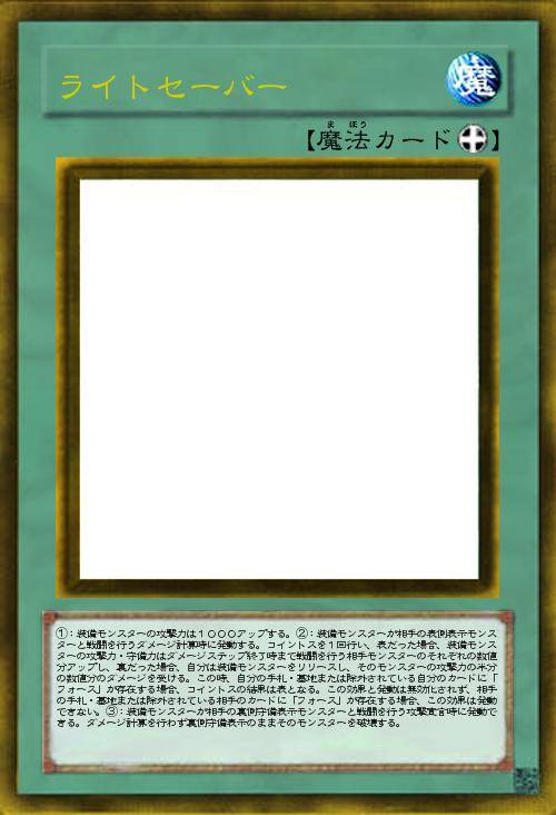 効果は結構原作の設定準拠で、セーバーのエネルギー自体はフォースによるものではなく普通のレーザーであるため、ただ使用する分にはフォースの有無は関係ない。と言うことで、装備モンスターの種族・属性の限定はありません。