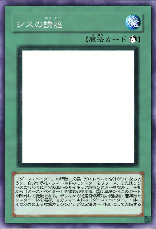 | 「ダース・ベイダー」の降臨に必要。①:レベルの合計が7になるように、自分の手札・フィールドのモンスターをリリース、またはリリースの代わりに自分の墓地のサイキック族モンスターを除外し、手札から「ダース・ベイダー」を儀式召喚する。②:墓地からこのカードを除外して発動できる。デッキから通常召喚可能な機械族・闇属性モンスター1体を選び、自分フィールドの「ダース・ベイダー」1体にその効果による攻撃力500アップの装備カード扱いとして装備する。 | |||