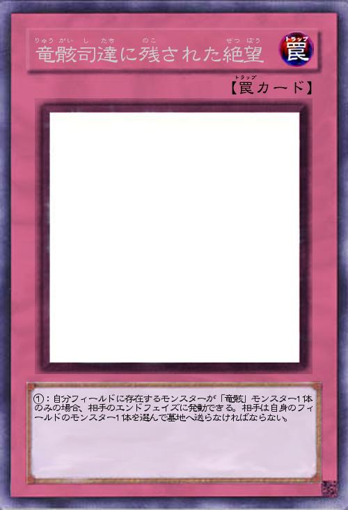 | ①:自分フィールドに存在するモンスターが「竜骸」モンスター1体のみの場合、相手のエンドフェイズに発動できる。相手は自身のフィールドのモンスター1体を選んで墓地へ送らなければならない。 | |||