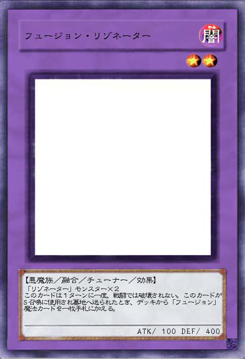 | 「リゾネーター」モンスター×2 このカードは1ターンに一度、戦闘では破壊されない。このカードがS召喚に使用され墓地へ送られたとき、デッキから「フュージョン」魔法カードを一枚手札に加える。 | |||
