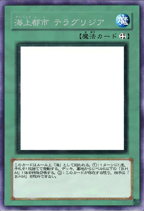 | このカードはルール上「海」として扱われる。①:1ターンに1度、手札を1枚捨てて発動する。デッキ、墓地からレベル6以下の「BHM」1体を特殊召喚する。②:このカードが存在する限り、相手は「BHM」を除外できない。 | |||