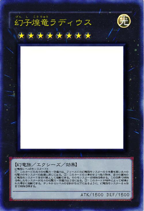 | 幻竜族レベル8モンスター×4 ①:このカードの元々の攻撃力・守備力は、フィールドの幻竜族モンスターのうち最も高い元々の攻撃力のモンスターの数値と同じになる。②:このカードのX素材を2つ取り除き、自分の墓地の幻竜族モンスター1体を対象として発動できる。そのモンスターを特殊召喚する。この効果で特殊召喚したモンスターが元々の攻撃力・守備力は2倍になる。③:このカードが相手によって破壊された場合に発動できる。デッキからレベルの合計が8以下になるように、幻竜族モンスターを4体まで特殊召喚する。 | |||