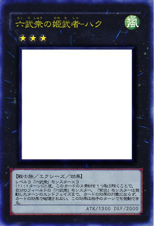 | レベル3「六武衆」モンスター×3 (1):1ターンに1度、このカードのX素材を1つ取り除くことで、自分のフィールドの「六武衆」モンスター、「紫炎」モンスターは発動したターンのエンドフェイズまで、カードの効果の対象にならず、カードの効果で破壊されない。この効果は相手のターンでも発動できる。 | |||