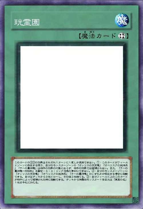 | このカードの②③の効果はそれぞれ1ターンに1度しか使用できない。①:このカードがフィールドゾーンに存在する限り、自分のモンスターゾーンの「オシリスの天空竜」「オベリスクの巨神兵」「ラーの翼神竜」は相手の効果の対象にならず、相手の効果では破壊されない。また、「ラーの翼神竜ー球体形」を融合・S・X・リンク召喚の素材にできない。②:自分のモンスターゾーンに「オシリスの天空竜」「オベリスクの巨神兵」「ラーの翼神竜」のいずれかが存在する場合に発動できる。自分はデッキから3枚ドローし、その後2枚捨てる。③:自分フィールド上のこのカードが相手によって破壊された時に発動できる。デッキから神属性モンスター1体または「真実の名」1枚を手札に加える。 | |||