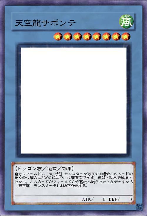 | 自分フィールドに「天空龍」モンスターが存在する場合このカードの元々の攻撃力は2000になり、攻撃宣言できず、戦闘・効果で破壊されない。このカードがフィールドから墓地へ送られたときデッキから「天空龍」モンスターを1体通常召喚する。 | |||