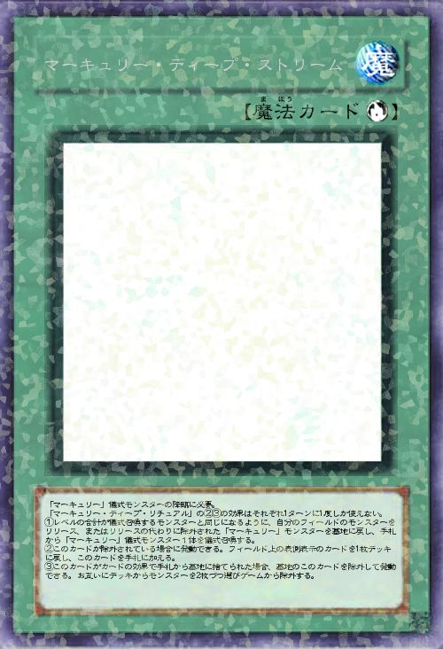| 「マーキュリー」儀式モンスターの降臨に必要。 「マーキュリー・ディープ・リチュアル」の②③の効果はそれぞれ1ターンに1度しか使えない。 ①レベルの合計が儀式召喚するモンスターと同じになるように、自分のフィールドのモンスターをリリース、またはリリースの代わりに除外された「マーキュリー」モンスターを墓地に戻し、手札から「マーキュリー」儀式モンスター1体を儀式召喚する。 ②このカードが除外されている場合に発動できる。フィールド上の表側表示のカードを1枚デッキに戻し、このカードを手札に加える。 ③このカードがカードの効果で手札から墓地に捨てられた場合、墓地のこのカードを除外して発動できる。お互いにデッキからモンスターを2枚づつ選びゲームから除外する。 | |||