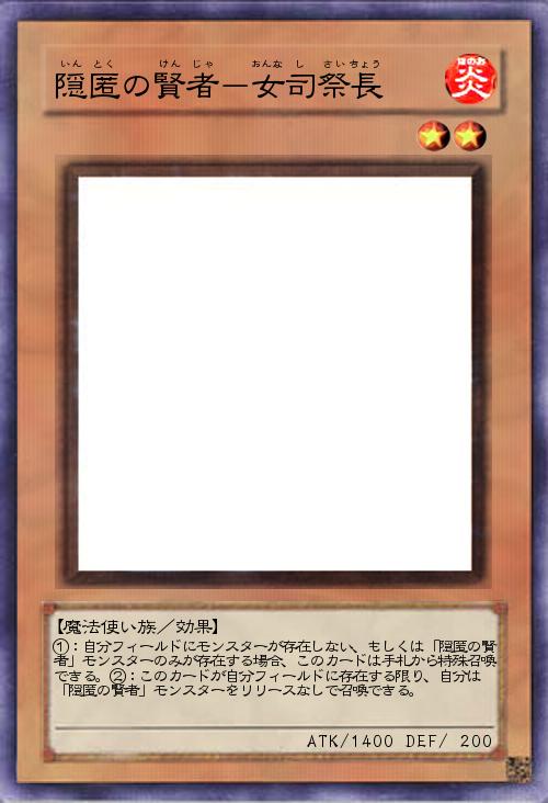 | ①:自分フィールドにモンスターが存在しない、もしくは「隠匿の賢者」モンスターのみが存在する場合、このカードは手札から特殊召喚できる。②:このカードが自分フィールドに存在する限り、自分は 「隠匿の賢者」モンスターをリリースなしで召喚できる。 | |||