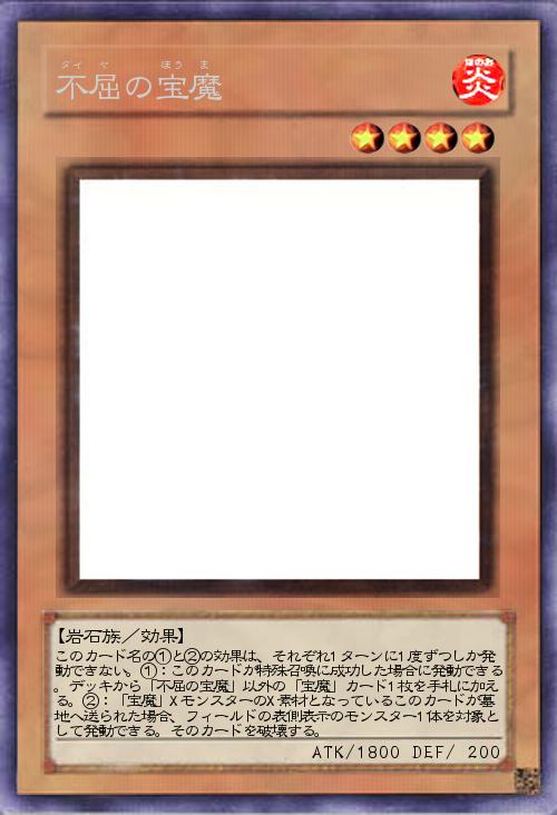 | このカード名の①と②の効果は、それぞれ1ターンに1度ずつしか発動できない。①:このカードが特殊召喚に成功した場合に発動できる。デッキから「不屈の宝魔」以外の「宝魔」カード1枚を手札に加える。②:「宝魔」XモンスターのX素材となっているこのカードが墓地へ送られた場合、フィールドの表側表示のモンスター1体を対象として発動できる。そのカードを破壊する。 | |||