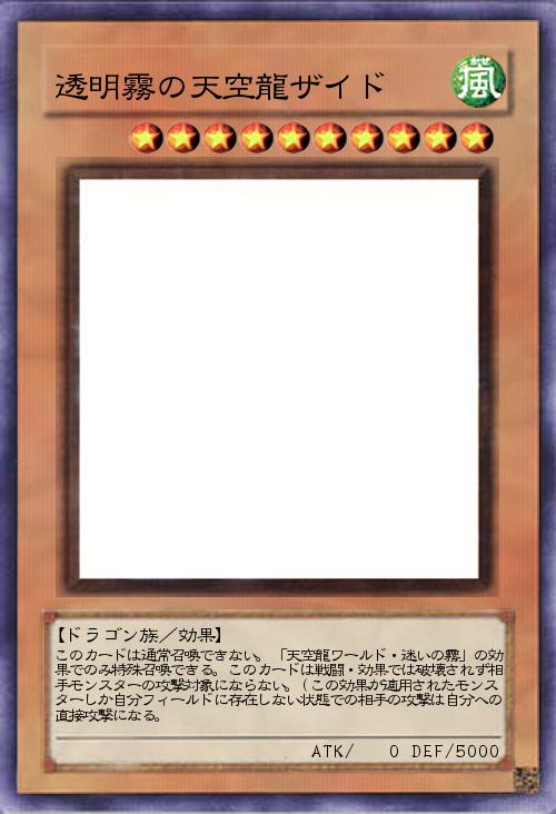 | このカードは通常召喚できない。「天空龍ワールド・迷いの霧」の効果でのみ特殊召喚できる。このカードは戦闘・効果では破壊されず相手モンスターの攻撃対象にならない。(この効果が適用されたモンスターしか自分フィールドに存在しない状態での相手の攻撃は自分への直接攻撃になる。 | |||