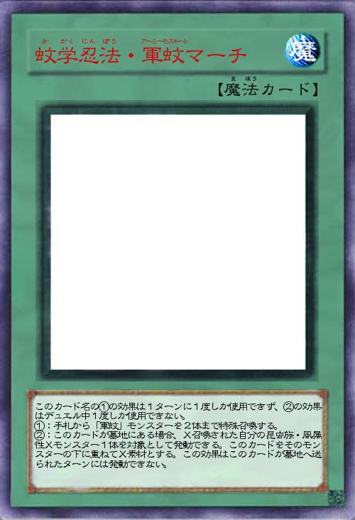 忍法なので一応HANZO=サンでサーチできる。軍蚊は昆虫なので変化の術でリクルートできるし組み合わせとしてはありなのかもしれない。」(2018-01-14 12:00)