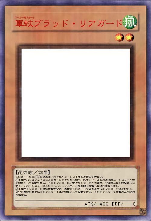 墓地の軍蚊3体をコストに昆虫Xを復活させられる。①の効果で乗せたモンスターの攻撃をシャドーモスキートに誘導できます。」(2018-01-15 16:04)