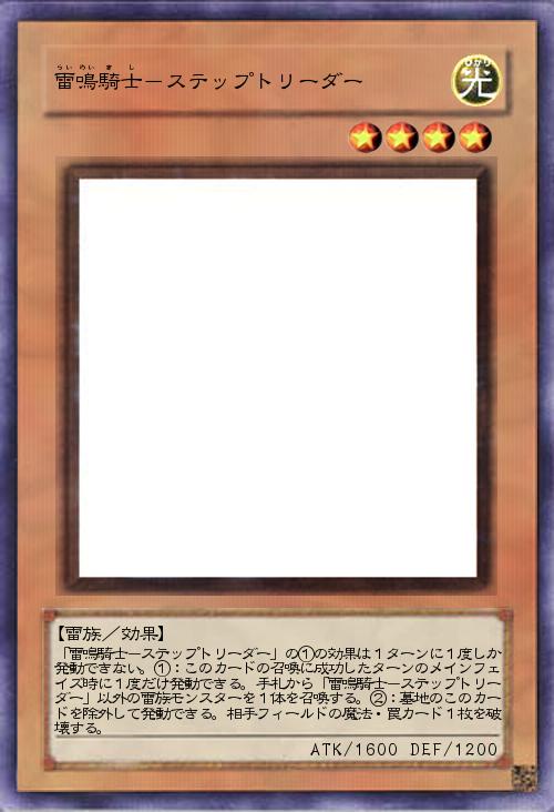 | 「雷鳴騎士-ステップトリーダー」の①の効果は1ターンに1度しか発動できない。①:このカードの召喚に成功したターンのメインフェイズ時に1度だけ発動できる。手札から「雷鳴騎士-ステップトリーダー」以外の雷族モンスターを1体を召喚する。②:墓地のこのカードを除外して発動できる。相手フィールドの魔法・罠カード1枚を破壊する。 | |||