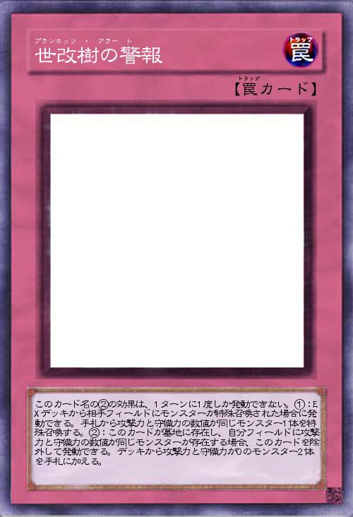 | このカード名の②の効果は、1ターンに1度しか発動できない。①:EXデッキから相手フィールドにモンスターが特殊召喚された場合に発動できる。手札から攻撃力と守備力の数値が同じモンスター1体を特殊召喚する。②:このカードが墓地に存在し、自分フィールドに攻撃力と守備力の数値が同じモンスターが存在する場合、このカードを除外して発動できる。デッキから攻撃力と守備力が0のモンスター2体を手札に加える。 | |||