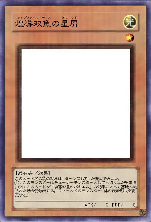 | このカード名の②の効果は1ターンに1度しか発動できない。 ①:このモンスターはチューナーモンスターとしても扱う事が出来る。②:このカードが「煌導双魚のバキエル」の効果によって墓地へ送られた場合発動出来る。フィールドのモンスター1体の表示形式を変更する。 | |||