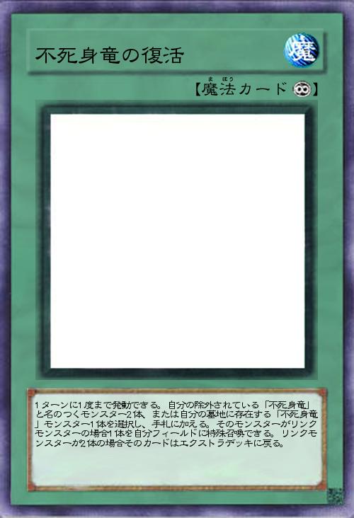 | 1ターンに1度まで発動できる。自分の除外されている「不死身竜」と名のつくモンスター2体、または自分の墓地に存在する「不死身竜」モンスター1体を選択し、手札に加える。そのモンスターがリンクモンスターの場合1体を自分フィールドに特殊召喚できる。リンクモンスターが2体の場合そのカードはエクストラデッキに戻る。 | |||