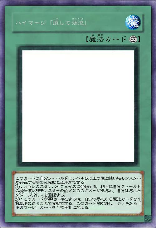 | このカードは自分フィールドにレベル5以上の魔法使い族モンスターが存在する時のみ発動と適用ができる。 ①:お互いのスタンバイフェイズに発動する。相手に自分フィールドの魔法使い族モンスターの数×200ダメージを与え、自分は与えたダメージ分LPを回復する。 ②:このカードが墓地に存在する時、自分の手札から魔法カードを1枚墓地に送ることで発動できる。このカードを除外し、デッキから「ギガマージ」カードを1枚手札に加える。 | |||