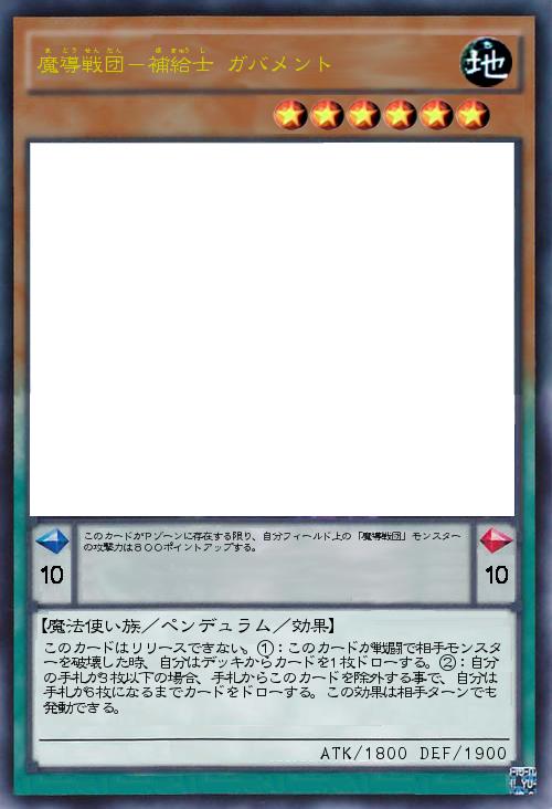 | このカードがPゾーンに存在する限り、自分フィールド上の「魔導戦団」モンスターの攻撃力は800ポイントアップする。 | |||