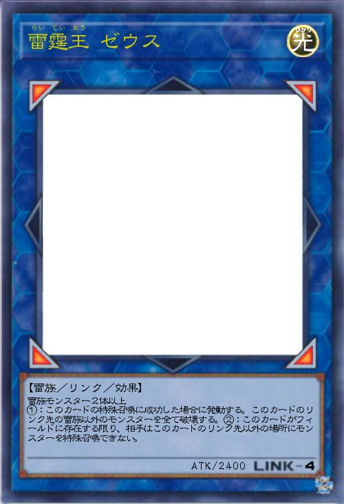 | 雷族モンスター2体以上 ①:このカードの特殊召喚に成功した場合に発動する。このカードのリンク先の雷族以外のモンスターを全て破壊する。②:このカードがフィールドに存在する限り、相手はこのカードのリンク先以外の場所にモンスターを特殊召喚できない。 | |||