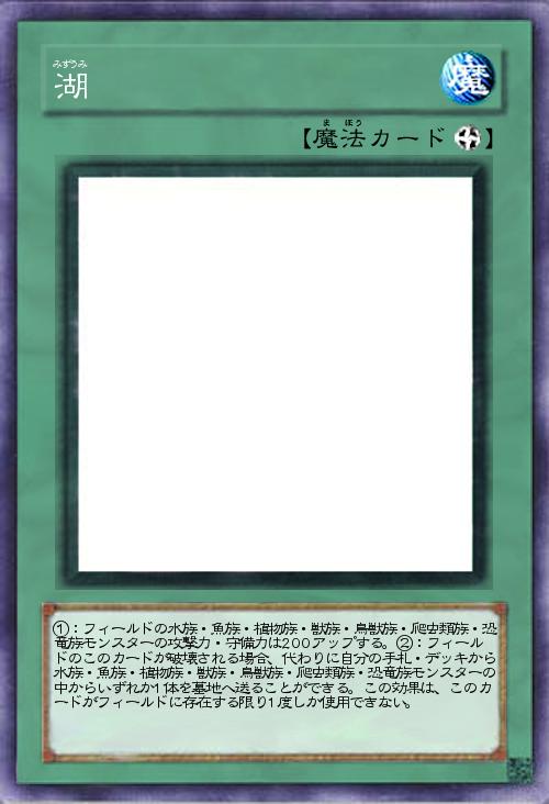 | ①:フィールドの水族・魚族・植物族・獣族・鳥獣族・爬虫類族・恐竜族モンスターの攻撃力・守備力は200アップする。②:フィールドのこのカードが破壊される場合、代わりに自分の手札・デッキから水族・魚族・植物族・獣族・鳥獣族・爬虫類族・恐竜族モンスターの中からいずれか1体を墓地へ送ることができる。この効果は、このカードがフィールドに存在する限り1度しか使用できない。 | |||