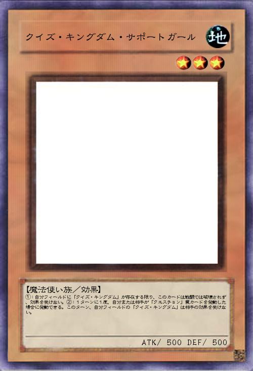 | ①:自分フィールドに「クイズ・キングダム」が存在する限り、このカードは戦闘では破壊されず、効果を受けない。②:1ターンに1度、自分または相手が「クエスチョン」罠カードを発動した場合に発動できる。このターン、自分フィールドの「クイズ・キングダム」は相手の効果を受けない。 | |||