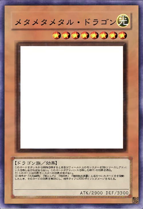 | このカードをデッキから特殊召喚するとき自分フィールド上のモンスターを3体リリースしアドバンス召喚しなければならない。このカードがアドバンス召喚した時(1)の効果を得る。 (1)このカードは効果モンスターの効果を受けない。 (2)相手が「次元幽閉」「落とし穴」「地砕き」「強制脱出装置」と名のついたカードをを発動したとき、そのカードの効果を無効にし、相手ライフに1000ポイントダメージを与える。 | |||