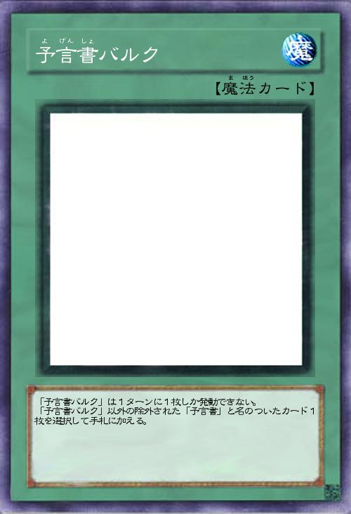 | 「予言書バルク」は1ターンに1枚しか発動できない。 「予言書バルク」以外の除外された「予言書」と名のついたカード1枚を選択して手札に加える。 | |||