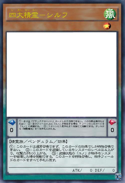 | ①:自分は「ブラッククローバー」カードしかP召喚できない。この効果は無効化されない ②:自分フィールド上に「ユノ」が存在する場合、Pゾーンのこのカードを「ユノ」に装備する。 ③:1ターンに1度手札を1枚捨てて発動できる。デッキから「精霊魔法」を1枚手札に加える。 | |||