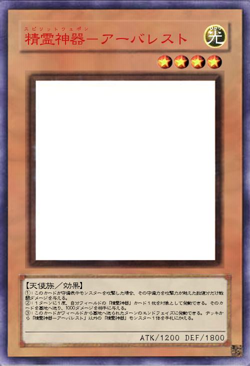 | ①:このカードが守備表示モンスターを攻撃した場合、その守備力を攻撃力が越えた数値分だけ戦闘ダメージを与える。 ②:1ターンに1度、自分フィールドの「精霊神器」カード1枚を対象として発動できる。そのカードを墓地へ送り、1000ダメージを相手に与える。 ③:このカードがフィールドから墓地へ送られたターンのエンドフェイズに発動できる。デッキから「精霊神器-アーバレスト」以外の「精霊神器」モンスター1体を手札に加える。 | |||