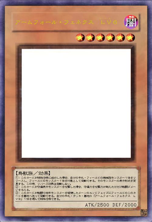 | ①:このカードが特殊召喚に成功した場合、自分の手札・フィールドの機械族モンスター1体をリリースし、フィールドのモンスター1体を対象として発動できる。そのモンスターの表示形式を変更する。この時、リバース効果は発動しない。 ②:このカードが守備表示モンスターを攻撃した場合、守備力を攻撃力が越えた分だけ戦闘ダメージを与える。 ③:このカードが戦闘で相手モンスターを破壊したターンのエンドフェイズにフィールドのこのカードを墓地へ送って発動できる。自分の手札・デッキ・墓地の「アームフォール・フェネクス LV9」1体を選んで特殊召喚できる。 | |||
