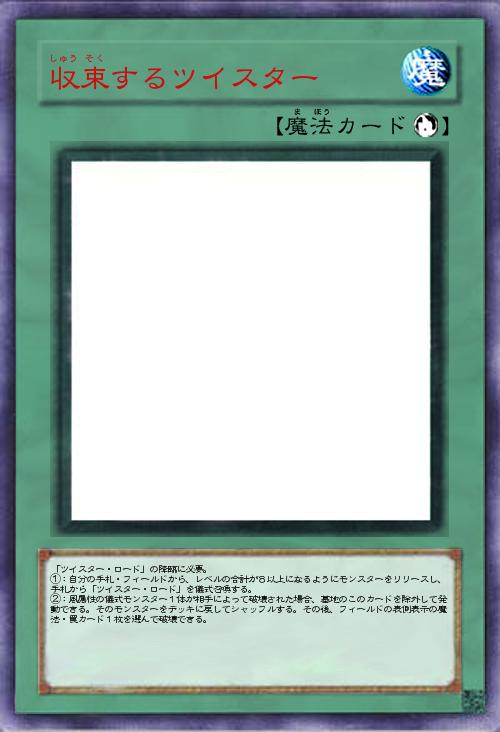 | 「ツイスター・ロード」の降臨に必要。 ①:自分の手札・フィールドから、レベルの合計が8以上になるようにモンスターをリリースし、手札から「ツイスター・ロード」を儀式召喚する。 ②:風属性の儀式モンスター1体が相手によって破壊された場合、墓地のこのカードを除外して発動できる。そのモンスターをデッキに戻してシャッフルする。その後、フィールドの表側表示の魔法・罠カード1枚を選んで破壊できる。 | |||