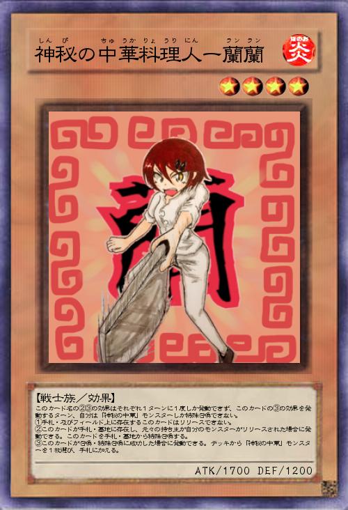さてさて、最初の料理人、ランランちゃんは打点もあり特殊召喚効果持ちのサーチャー。ここまで書くと危険な香りしかしませんが、サーチ効果を使用したターンは「神秘の中華」しかssできないので、悪用はされない…はず。
