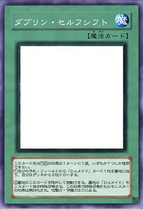 | このカード名の①②の効果は1ターンに1度、いずれか1つしか使用できない。 ①自分の手札・フィールドから「Daメイド」カード1枚を墓地に送り、自分はデッキから2枚ドローする。 ②墓地のこのカードを除外して発動できる。墓地の「Daメイド」モンスター1体を特殊召喚する。この効果で特殊召喚されたモンスターの効果は無効化され、攻撃力・守備力は0になる。 | |||
